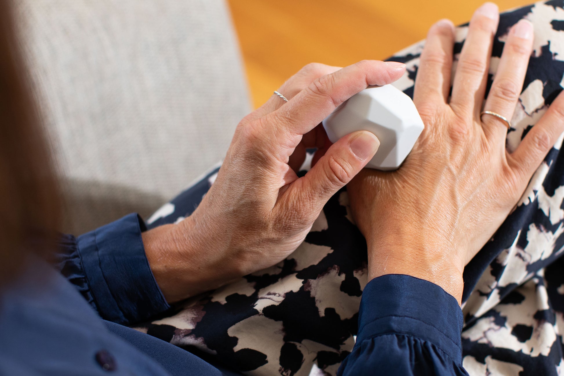 With its natural rock-like form, the ROCK fits comfortably in the hand and allows for a smooth rolling movement in the palm, creating a calming, repetitive rhythm which helps redirect nervous energy, ease anxiety, and enhance focus.